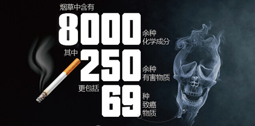 據研究發現,香煙煙霧含有幾千種化合物,包括一氧化碳、重金屬元素和高分子化合物等以氣態和氣溶膠形式存在的有毒物質,在吸煙場所可吸入顆粒物中的28. 7 %或22. 7 %來源于香煙煙霧。